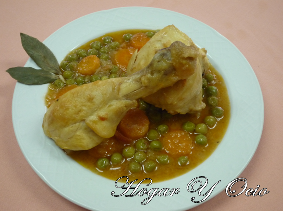 Un clásico de la cocina patria, os lo traigo desde el blog Hogar y Ocio, y es uno de los guisos de pollo que más me gustan. Necesitamos: 1 pollo limpio y troceado, cebolleta, ajo, zanahorias, tomate, guisantes, vino balnco, caldo de ave, harina, pimentón, nuez moscada, laurel, aceite de oliva, sal y pimienta. Enharinamos el pollo y lo doramos en una cazuela con un poco de aceite d eoliva. Luego, hacemos un sofrito de cebolla, ajo y tomate. deespues añadimos las zanahorias y los guisantes, dejamos cocinar unos minutos. Luego añadimos el pimentón, el caldo de ave y dejamos cocinar unos 30-40 minutos.Listo.