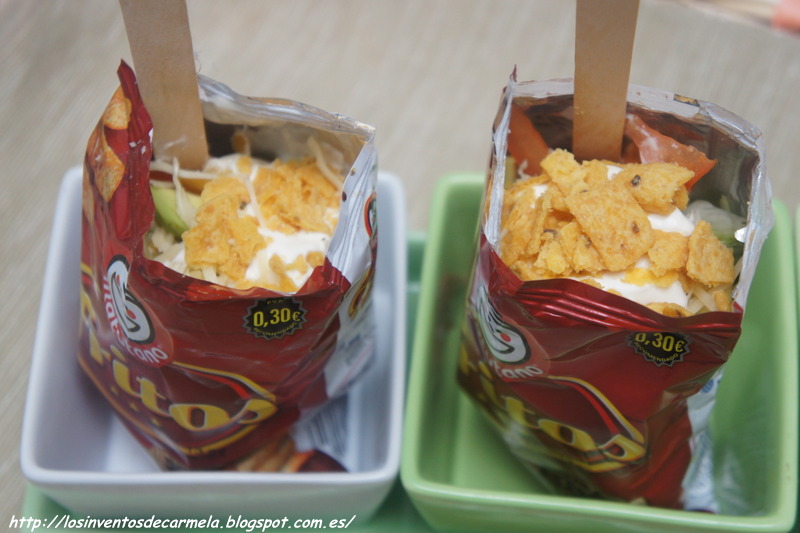 Y por último, de mi blog, " Los inventos de Carmela " os traigo una idea divertida para fiestas o para una salida al campo, unos tacos en bolsa para llevar, son deliciosos, a los niños les encanta, pueden hablar de sus cosas mientras van comiendo cada uno su propia bolsa y que pueden personalizar a su gusto sin ningún problema.