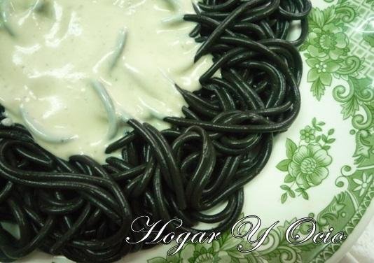 Solo tenemos que cocer la pasta, en este caso espaguettis negros, pero puede ser cualquier otra. Y mientras preparar la salsa. Para ello pondremos un poco de mantequilla con harina al fuego y cuando comience a sofreír removeremos y añadiremos leche y el queso azúl. Cuando esté la salsa terminada la serviremos junto con la salsa. ¡Menuda delicia! Si quieres ver todos los detalles de la receta pulsa sobre el titulo y te llevará a la receta completa.