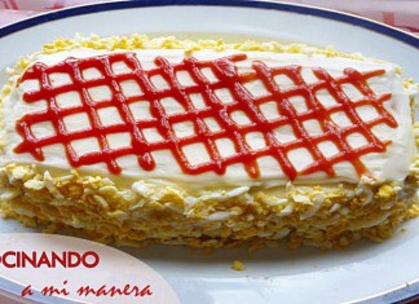 Qué rico este pastel de atún, tan fácil y tan rápido de preparar, es que me encanta esta receta de Carmen. Para su elaboración vas a necesitar latas de atún, huevos crudos, tomate frito, mayonesa, palitos de surimi, sal, huevos cocidos y ketchup. La preparación es muy fácil, poco mas que mezclar, meter al microondas y decorar una vez hecho, pero puedes VER LA RECETA AQUÍ