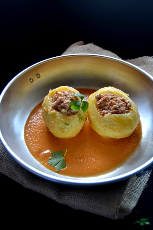 Me encanta las patatas rellenas ya sean de carne, marisco, verduras... y esta os va a gustar mucho ya que son unas PATATAS RELLENAS DE CARNE EN SALSA http://larosadulce.blogspot.com.es/2014/06/patatas-rellenas-de-carne-en-salsa.html con una pinta riquísima!! es del blog La rosa dulce.