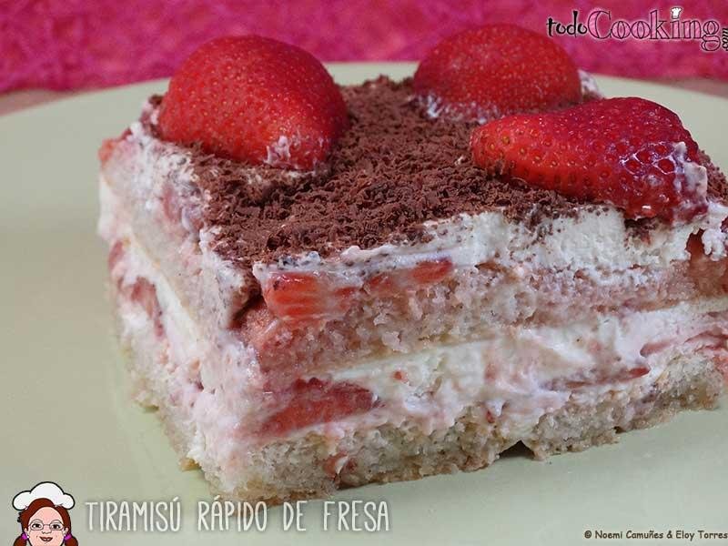 Desde Todocooking nos dejan esta rica versión del tiramisú, preparamos el postre con capas de bizcocho mojados en licor de vainilla, después la mezcla del queso mascarpone con la nata montada, y encima un coulis de fresas; que hemos echo cocinando unas fresas con azúcar y luego triturándolas; y con unas fresas cortadas, ponemos otra capa más con los mismo elementos y decoramos al gusto, con cacao, chocolate, fresas,....