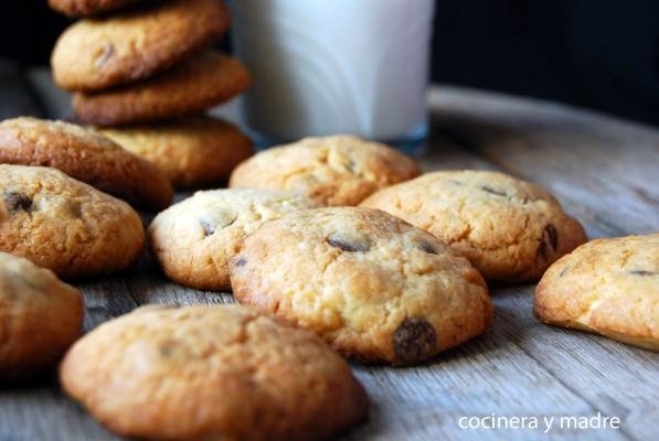 Desde el blog Cocinera y madre, Rosa nos enseña a preparar estas estupendas galletas con pepitas de chocolate. Si quieres preparar estas galletas en tu casa, vas a necesitar los siguientes ingredientes: mantequilla, azúcar, esencia de vainilla, huevo, pepitas de chocolate, harina, levadura y sal.