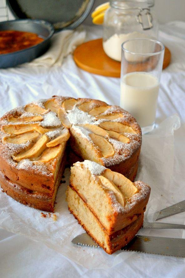 Esta deliciosa tarta del blog Patty´s Cake se caracteriza por llevar entre su preparación una deliciosa mezcla de especias que se suelen utilizar en la repostería anglosajona. Se elabora tamizando la harina con la levadura y las especias, reservamos. Posteriormente en un bol batimos azúcar y aceite hasta que se mezclan, incorporamos los huevos y seguimos batiendo, añadimos harina y leche y luego la mezcla seca que se preparó previamente. Cuando este todo integrado incorporamos manzanas y almendras, mezclando con una espátula. Colocamos en un molde y finalizamos con trozos de manzana en la superficie. Horneamos, dejamos enfriar y desmoldamos. Puedes ver al detalle proporciones y resto de ingredientes a continuación: