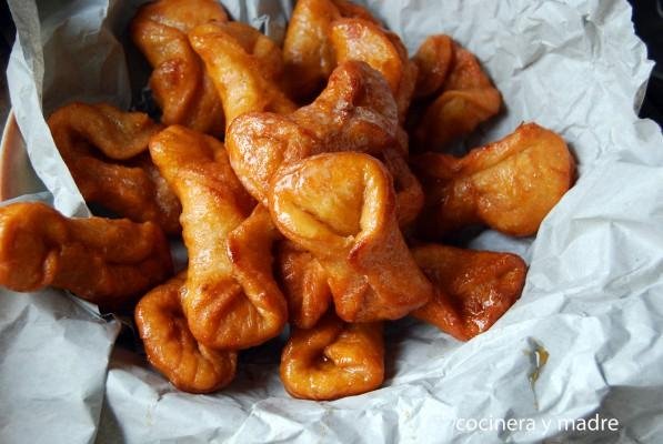 Como los dulces anteriores, éstos también se elaboran con una masa hecha de harina, aceite, vino blanco, miel, además de limón y anís para aromatizar. Esta masa tiene una forma característica que ella explica muy bien en sus fotografías paso a paso y vídeo; finalmente se fríen y se bañan con miel antes de devorarlos.