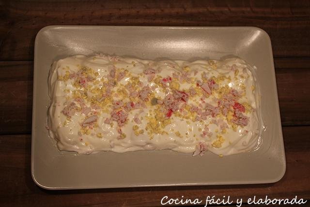 Jesús, nos ofrece unos huevos escondidos. Bajo una gran capa de mayonesa hay unos huevos rellenos con atún y barritas de surimi. Tenemos que cocer los huevos y rellenarlos con el resto de los ingredientes. Para saber más: (Aquí)