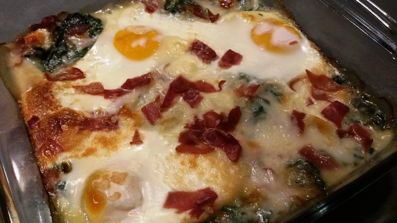 Acelgas gratinadas con huevo y jamón: