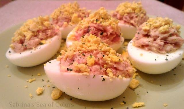Huevos rellenos de atún y surimi: