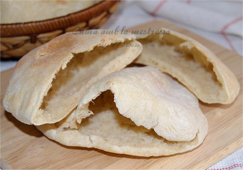 Y qué me decís si os cuento que en blog Cuina amb la mestressa nos dan la receta para hacer en casa pan de pita, si si, ¡pan de pita!, todo un lujo, ¿no? Vamos, me parece una gozada disfrutar de este típico pan árabe para rellenar con lo que más nos guste. La preparación es realmente sencilla, mezclando todos los ingredientes como si fuéramos a hacer un pan grande, pero hay que formar bolas pequeñas y amasarlas finitas para conseguir panes con la típica forma de pan de pita, y el resultado es estupendo, además puedes prepararlos con tiempo, se conservan perfectos en una bolsa y en el momento de consumirlos sólo hay que pasarlos por la tostadora unos segundos y listo, perfectos para disfrutar.