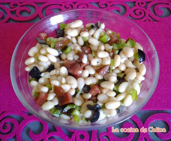1- Despuntar, cortar y desvenar las habichuelas/judías en pedazos de 1 centímetro, se pone una olla con agua y sal, esperar a que este hirviendo y se echan las habichuelas (el secreto, es echar la verdura en agua hirviendo para que no pierda el color), cuando estén tiernas se sacan y se echan en agua fría, dejar unos minutos, escurrimos, y reservamos.