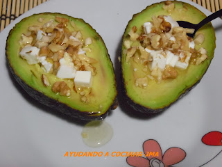 Os dejo un postre con fruta, esta vez aguacate con queso y miel al que he añadido unos frutos secos. A los que aún no lo hayáis probado, os animo a hacerlo, sin duda os va a sorprender.