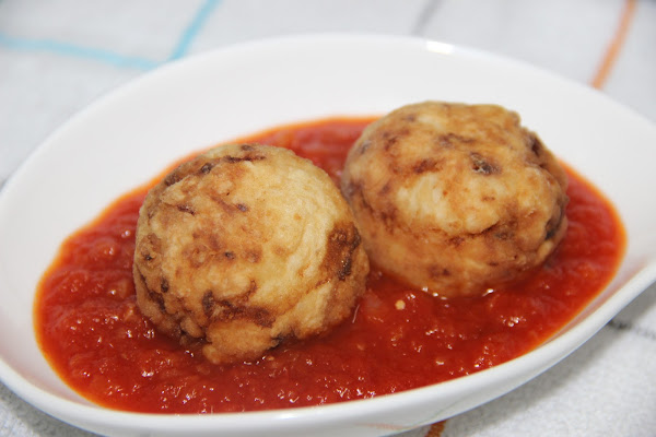 Remojamos el pan en la leche hasta que quede blando. Lo escurrimos y desmigamos en un bol. Añadimos el huevo batido. Picamos el ajo y la cebolla finamente y se la añadimos. Añadimos también el pescado desmigado. Salpimentamos. Con ayuda de dos cucharas ligeramente empapadas en agua, damos forma a las albóndigas y las rebozamos en harina. Freímos en abundante aceite.