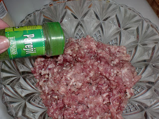 pon la carne en un bol y añade el aja , tengo que decir que suelo usar ajo fresco pero no tenia y usé este