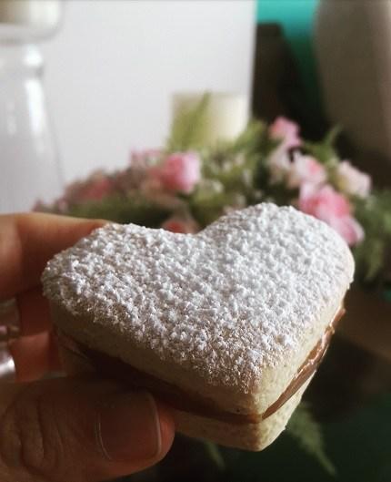 Este postre tiene un significado muy personal y romántico, ya que nos identifica a Dani (argentino) y a mi (peruana). Durante nuestra visita a Granada – España, conocimos un bar argentino en el que vendían alfajores, me comí un par de ellos y me encantaron, así que ya tenía en mente prepararlos en un futuro cercano. Finalmente hoy, día del amor, me animé a hacerlos ya que vi en ellos la posibilidad de mezclar un poquito de nosotros en un sólo dulce.