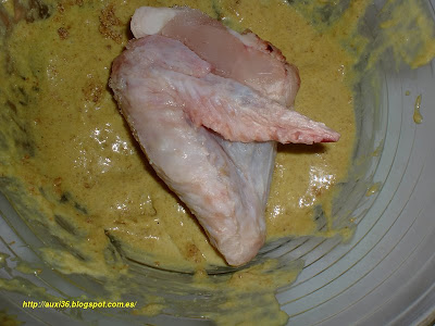 Alitas de pollo,mostaza y caldo de pollo en pastillas