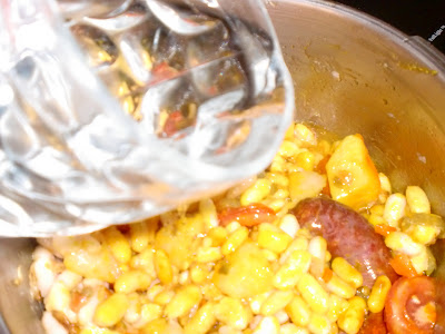 Es un rico potaje, muy sencillo de hacer. Las alubias me gustan de todas formas.Y pensar que cuando era pequeña mi madre no conseguia que probara las legumbres. Ingredientes para 4 personas: Cuatro puñados de alubias. Cuatro puñados de garbanzos. 1 patata a trozos. Chorizo. 1 morcilla . 2 cucharadas de pimentón. Azafrán. Aceite. Sal. Cebolla rallada. Tomate rallado. 2 dientes de ajos. Elaborac ...