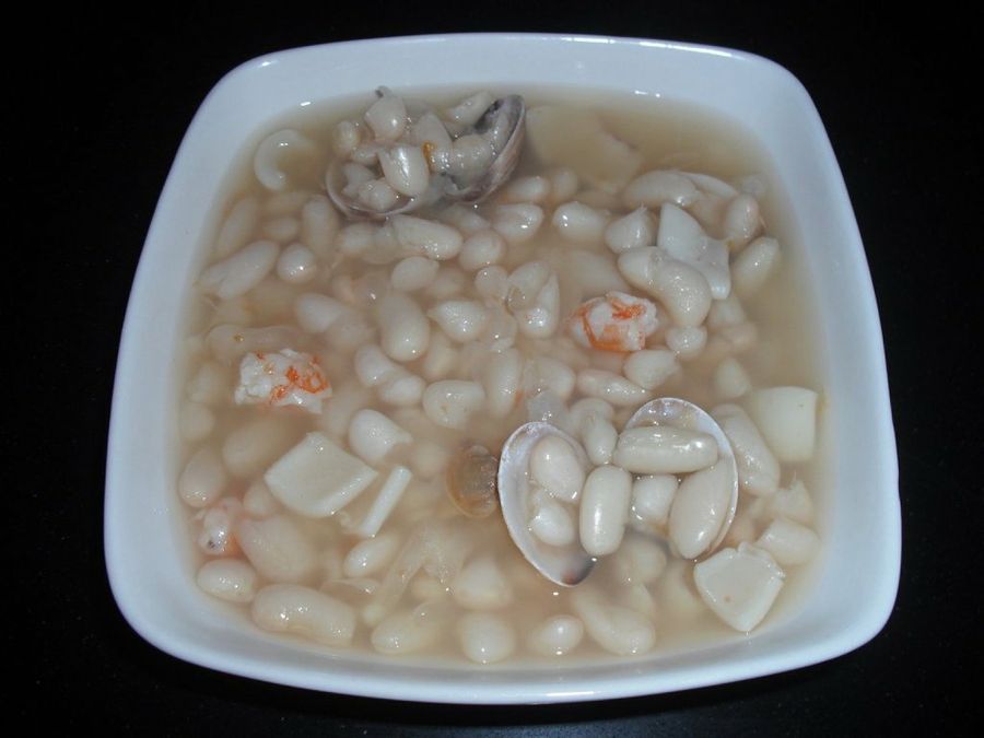 Judías blancas con almejas, calamar y langostinos (Jaesa)
