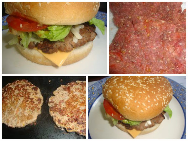 En el blog Julia y Sus Recetas podemos encontrar otra forma diferente de preparar la carne de hamburguesa; Ponemos en un bol la carne, sal, pimienta, orégano, perejil, los huevos, el pan rallado y lo mezclamos todo. Se deja reposar y se cogen porciones que aplastaremos y rellenaremos con queso. Tapamos con un poco de carne y la cocinamos a la plancha por cada lado, ponemos esta carne sobre el pan que habremos elaborado previamente en una panificadora; se coloca agua tibia con levadura huevo, harina, sal, entre otros ingredientes. Amasamos dejamos reposar y hacemos los panecillos que hornearemos. Puedes ver al detalle la elaboración de esta receta haciendo clic a continuación: