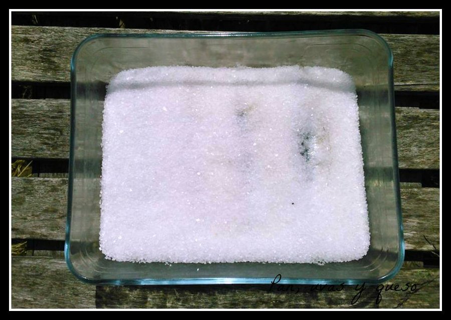Una vez transcurridas las 72 horas, sacamos el recipiente de la nevera y el pescado de la sal. Cuando retiremos la sal de su superficie, veremos un pescado desecado... justo lo que queríamos.