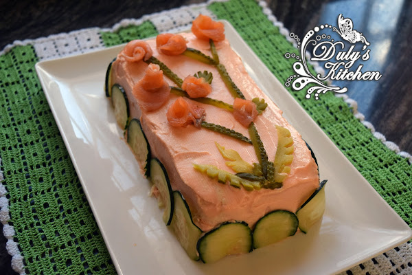 PASTEL FRÍO DE SALMÓN Y PAN DE MOLDE ( receta aquí )