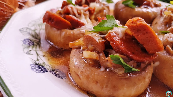 Hoy toca cocina vegetariana. Unos fabulosos champiñones rellenos con chorizo vegetal.En casa somos vegetarianos 2 o 3 veces por semana. Así, disfrutamos de platos elaborados sólo con vegetales o frutas que nos ayudan a disfrutar de una mejor calidad de vida.Champiñones rellenos Champiñones rellenos , ingredientes:8 champiñones portobello.Chorizo vegetal (ver receta).1 cebolleta, orégano, tomillo. ...