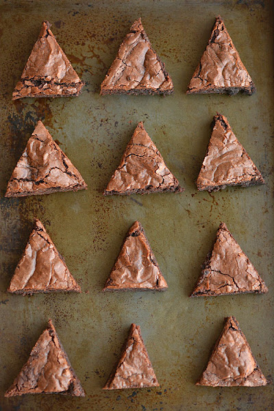 3. Utilizar un cuchillo bien afilado grande para cortar el brownie, así evitarás tener que volver a recortar algunos de los bordes en triángulos, y aprovecharás todo.