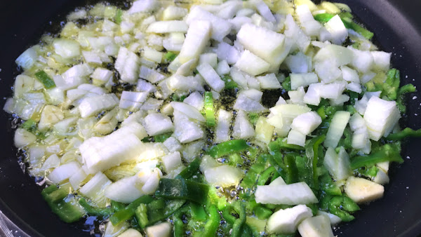 Ingredientes:Arroz tipo bomba (250 gr o 0,55 libras o 8,8 onzas)Pollo (2 cuartos traseros troceados)Lomo de cerdo -de cabezal- (500 gr o 1,1 libras o 17,63 onzas)Chorizo (2)Cebolla (1)Pimiento verde (1)Ajo (6)Tomate (3)Pimentón dulce (1 cucharadita colmada)Agua (3 litros)Sal (al gusto)Aceite de olivaPreparación:Pela la cebolla y córtala en trozos a tu gusto.Limpia el pimiento, retira el pedúnculo ...