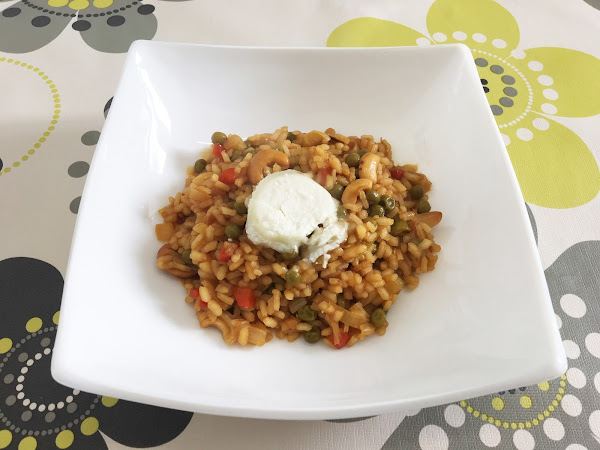 Arroz basmati 100 gr por persona agua el doble que de arroz pimiento verde 1 puerro 1 filetes de pechuga de pavo o pollo tomate frito 1 ó 2 cucharadas pasas un puñado curry salSe pochan un poco el puerro y el pimiento en juliana, antes de que estén dorados se añade la carne a trocitos pequeños hasta que se dore, entonces se añade el tomate y se le da unas vueltas. Incorporar el arroz y freir durante 1 minuto. Añadir el agua, la sal y el curry al gusto y un puñado de pasas y cocer el tiempo indicado en el paquete de arroz.