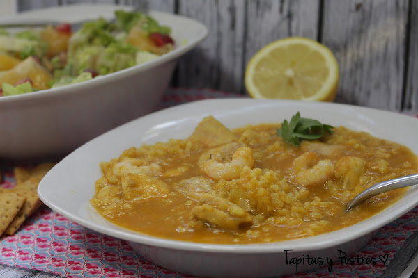 1 cebolla mediana,2 pimientos verdes,2 cucharadas de tomate frito,1 cucharada de ajo picado,500 gr de almejas,15 gambones,300 gr de arrozLo primero de todo, es hacer un buen caldo con las cabezas y las cáscaras de las gambas o langostinos, mientras sofreímos las gambas y las reservamos