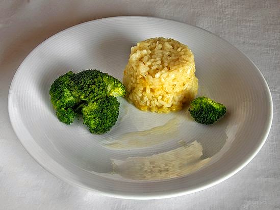 - Servimos disponiendo artísticamente el arroz y el brócoli en el plato.