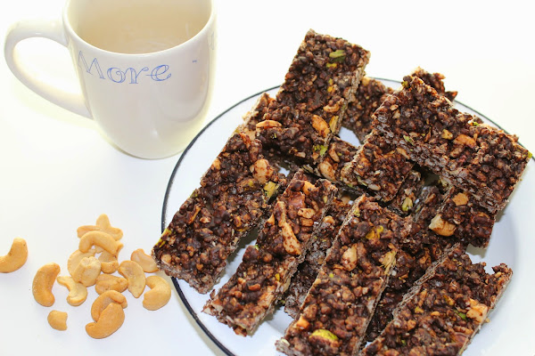 Este fin de semana mi tato se embarcó en la locura de correr 62 km, en una carrera de montaña, con nieve y 3000 metros de desnivel. ¡¡¡ 10 horas!!! Es un valiente, y necesitaba un aporte extra de energía, así que sobrino y hermana le preparamos estas barritas. BARRITAS ENERGÉTICAS DE ARROZ INFLADO Y FRUTOS SECOSIngredientes: (30 barritas como las de la foto)100 g miel200 g chocolate fundir100g cer ...