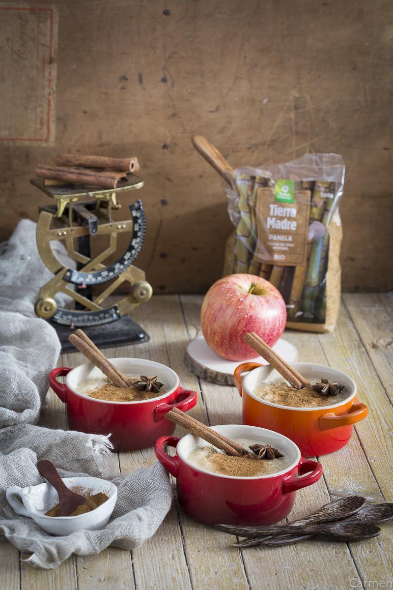 Hoy te traigo una receta tradicional como el arroz con leche, pero en lugar de añadir azúcar, la he sustituido por Panela Bio de Intermón Oxfam y manzana, para dar un toque de sabor y tener un arroz tan cremoso como otras versiones que utilizan nata. La receta es de Ruth, que tiene un blog con muchas recetas saludables que merece la pena probar.