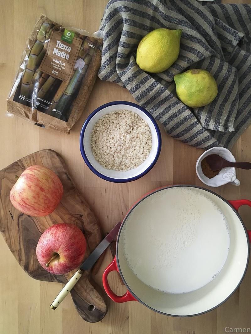 Ingredientes para 8 unidades de arroz con leche y manzana: