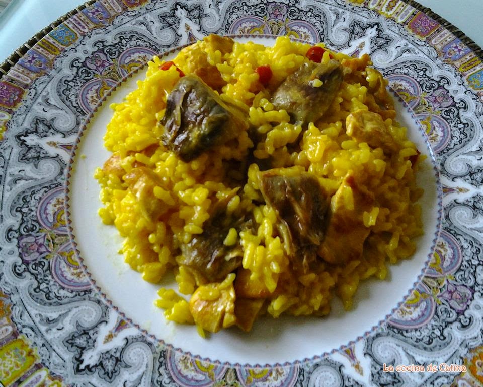 Arroz con pollo y alcachofas