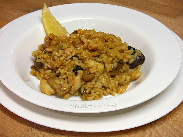 La caja traía caldo Aneto para paella con sofrito y he hecho este arroz con sepia y setas, tengo que deciros que me ha gustado mucho el sabor del caldo. parece casero y en un momento tienes preparado un estupendo arroz.