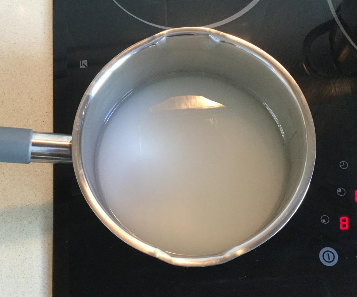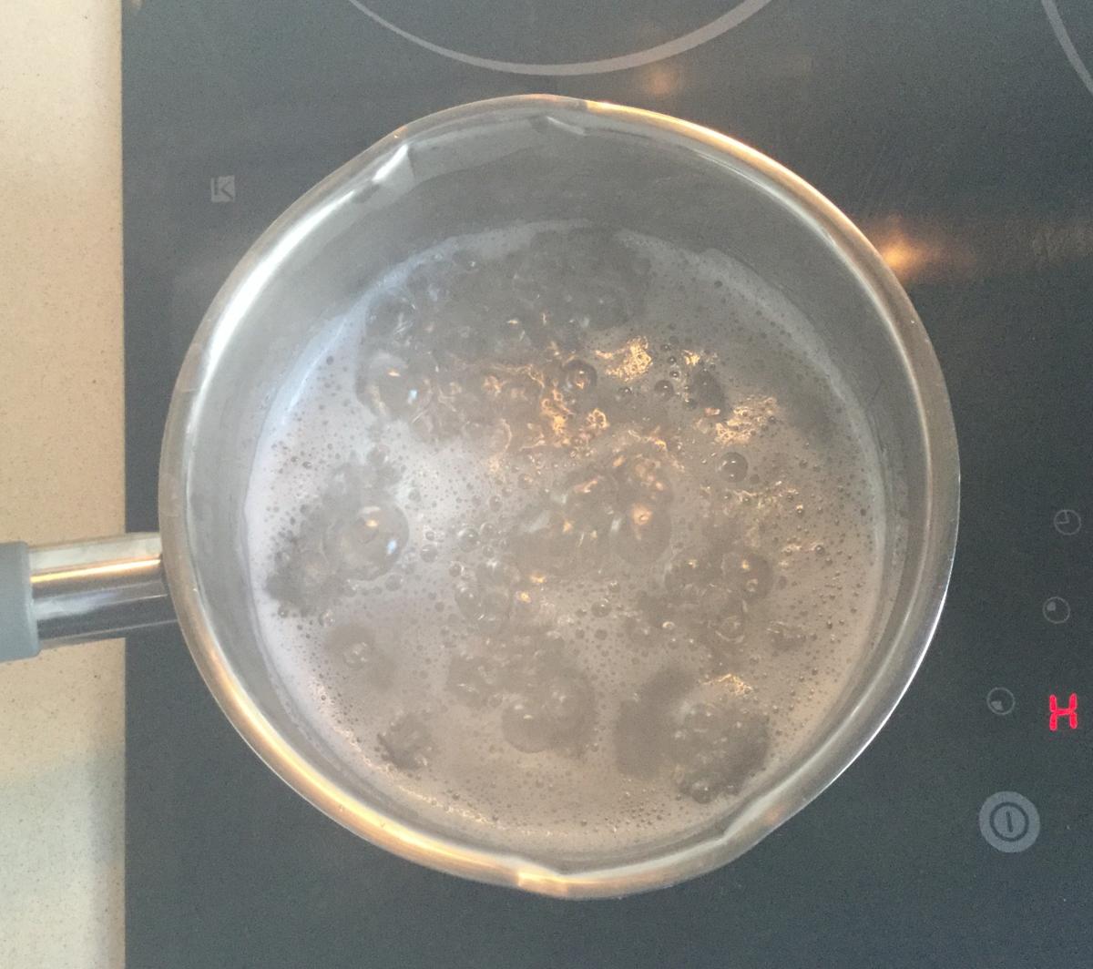 Removemos un poco hasta que se disuelvan los sólidos en el agua y esperamos a que llegue a ebullición.