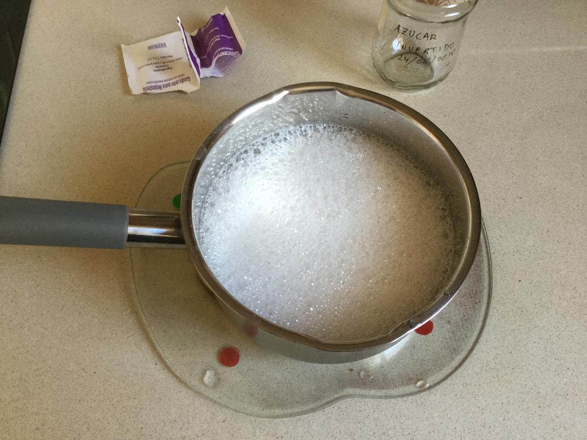 y mezclamos con la varilla. Va a formarse mucha espuma pero no importa, cuando enfríe desparecerá.