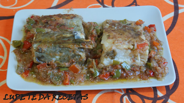Hasta terminar todos los trozos, dejamos en espera en una fuente ,mientras pochamos los pimientos cortaditos