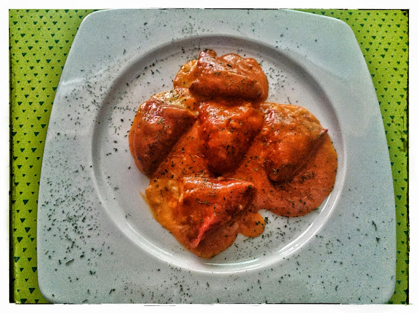 Yo suelo poner los trozos y luego echar la salsa como esta en las imagen: