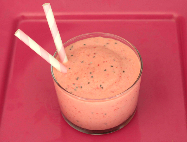 SMOOTHIE DE FRESA Y COCO CON SEMILLAS DE CHÍA