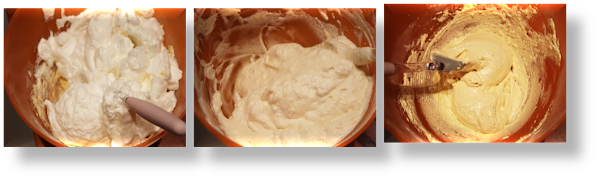 A continuación, incorpora las claras montadas al bol y mezcla con movimientos envolventes.