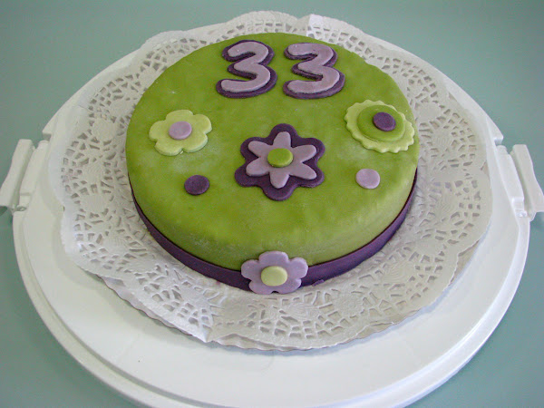 Para el relleno montar la nata y fundir al baño maría el chocolate, cuando este fundido ir mezclando con la nata ya montada con una espatula (mezclar sin varillas) hasta alcanzar el sabor deseado. Cuando este hecho el bizcocho dejar enfriar desmoldar, partir por la mitad, extended el relleno con una espatula y juntad las mitades, añadir nata encima del pastel y nivelar, coger el fondant y dar forma con el rodillo hasta que cubra el bizcocho, con trocitos de fondant que hemos reservado añadir colorantes y hacer las flores y hojas (para hacer las flores corta una tira de un centímetro de ancho por unos diez de largo y ves enrollando y dando forma con los dedos, ya por último con la manga pastelera añade gotitas de nata y pon perlitas, decora a tu gusto y a disfrutar. :-)