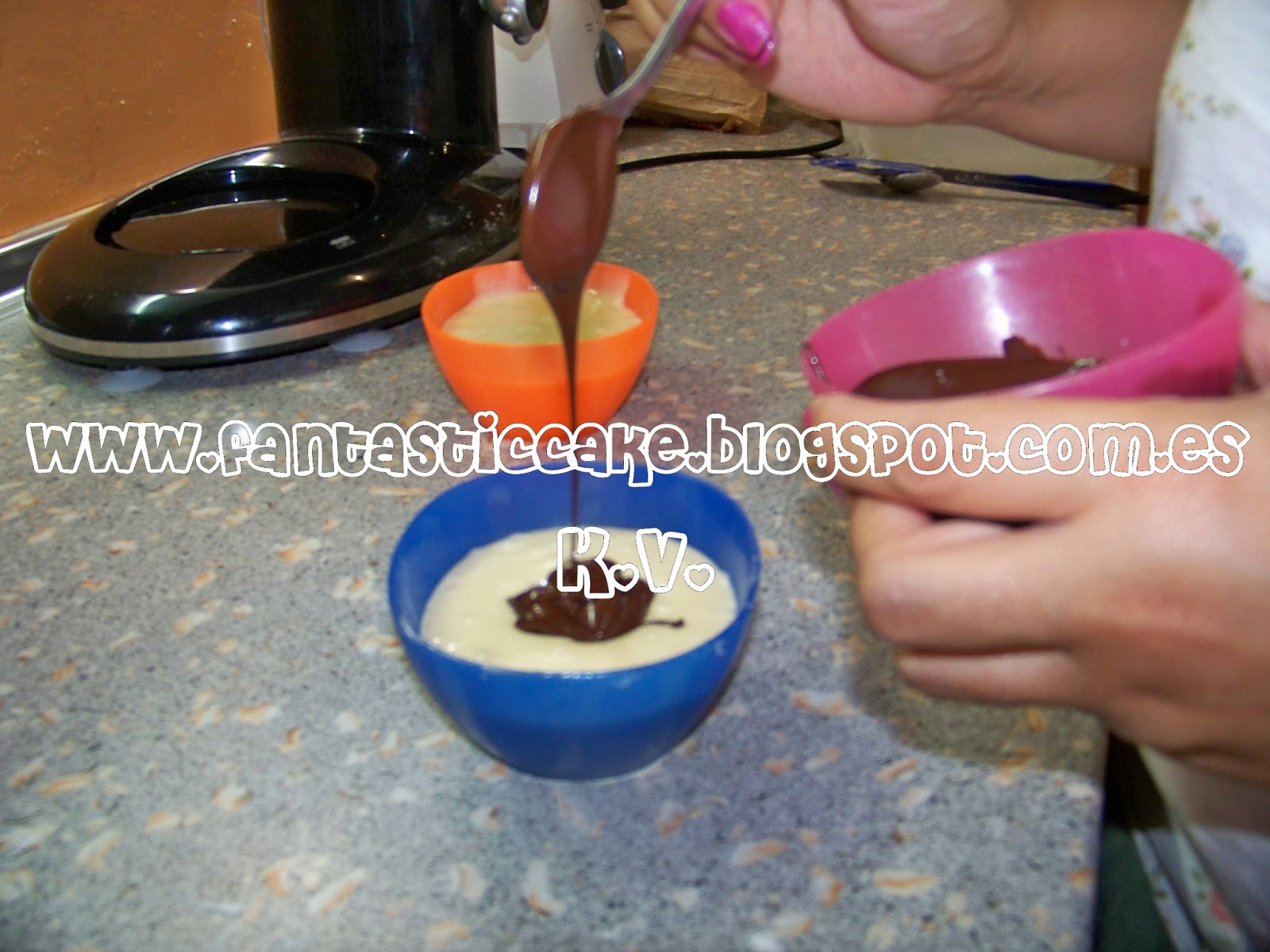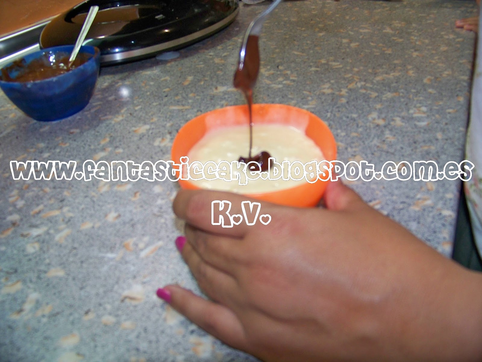 Repetimos tantas veces como manchas queramos en el bizcocho. Yo solamente hice una.