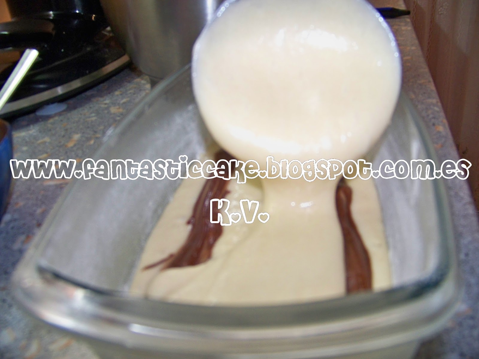 Ahora vertemos parte de la masa "blanca" en un molde previamente engrasado y enharinado