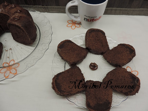 4 huevos,1 vaso de harina (150 grs.) 1 vaso de azúcar (220 grs.), 1/2 vaso de aceite (de oliva suave ó girasol) 100 grs. 1 sobre de levadura royal, 100 ml. de vermouth rojo, 125 grs. de almendras crudas (una bolsita de las de mercadona). 2 cucharadas de nutellaSe baten el azúcar y los huevos, después se le añade el aceite, el vermut, se bate otra vez,