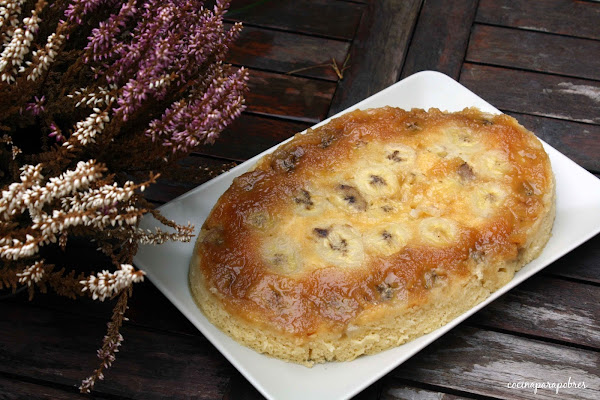 Quien puede decir que no a un rico bizcocho de plátano y chocolate? En mi caso, imposible resistirse. Se trata de un bizcocho muy fácil, que no necesita huevos y con un sabor riquísimo. Es una receta para un molde no muy grande, y que no sale excesivamente alto, pero tiene un gusto espectacular! Si queremos se puede sustituir el azúcar moreno con otro tipo de edulcorante o un sirope o caramelo de ...