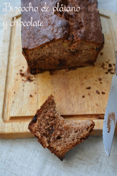 Hoy toca Bizcocho, además una Receta de Postre, muy sencilla y exquisita, el plátano junto a las pepitas de chocolate, le dan mucho juego a esta Receta, de la Repostería clásica.