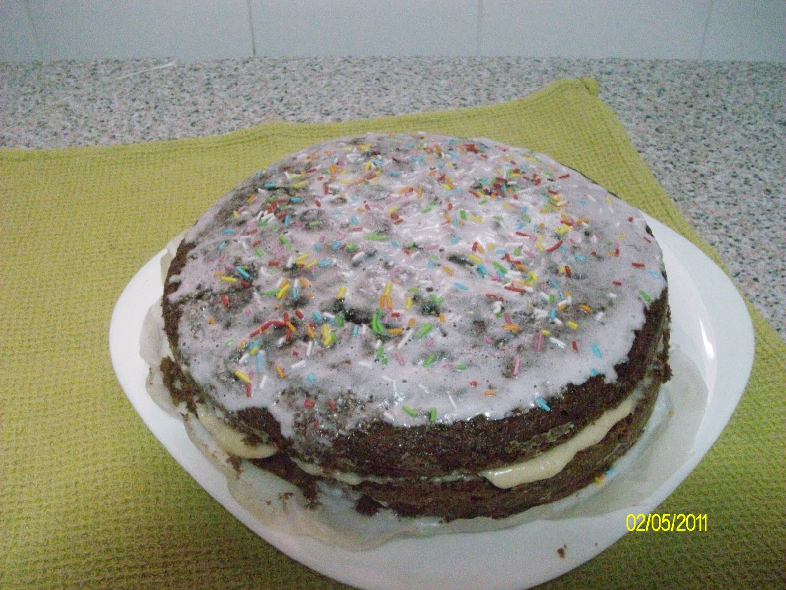 Para la crema pastelera, separamos un vasito de leche, en el que disolvemos la maizena. El resto la ponemos a calentar con la cascara del limón, la vainilla y la canela.Cuando la leche empieze a hervir, bajamos el fuego y añadimos la leche con maizena. Lo dejamos a fuego no muy fuerte hasta que empieze de nuevo a hervir.Batimos las yemas con el azúcar hasta que queden bien cremosas y cuando lo que tenemos en el fuego rompa a hervir añadimos la mezcla del azúcar y las yemas. Removemos constantemente a fuego bajo y cuando espese retiramos. Dejamos enfriar. Partimos el bizcocho por la mitad y rellenamos. Lo podemos glasear (con clara de huevo, azúcar glass y limón) como he hecho yo.Riquiiiisimo.
