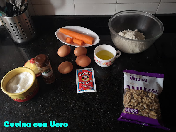 Zanahorias 300 gr. huevos 2 mantequilla 50 gr. harina 125 gr. azúcar moreno 175 gr. nueces troceadas 40 gr. canela en polvo 1 cucharadita levadura 1 cucharadita sal 1 pellizcoPrecalentamos el horno a 180ºC. Mientras, en un bol mezclamos la harina tamizada con la canela, la levadura, la sal , el azúcar y las nueces. Reservamos. Por otro lado se trituran las zanahorias, se añaden los huevos y la mantequilla y se bate todo hasta que queden integrados. A continuación, se añade la otra mezcla reservada y se remueve hasta obtener una masa uniforme y sin grumos (este paso se puede hacer con batidora ó thermomix). Finalmente, engrasamos un molde con mantequilla, vertemos la masa e introducimos en el horno. Cocinamos unos 25 minutos. Se deja enfriar, se desmolda, y se puede cubrir con azúcar glass.
