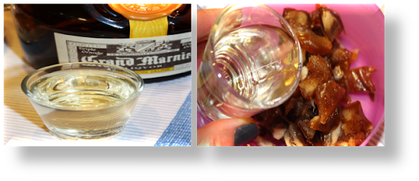 Incorpora a los dátiles el licor de naranja (opcional). Calienta en el microondas 1 MINUTO a una temperatura de 800W. Deja enfriar.